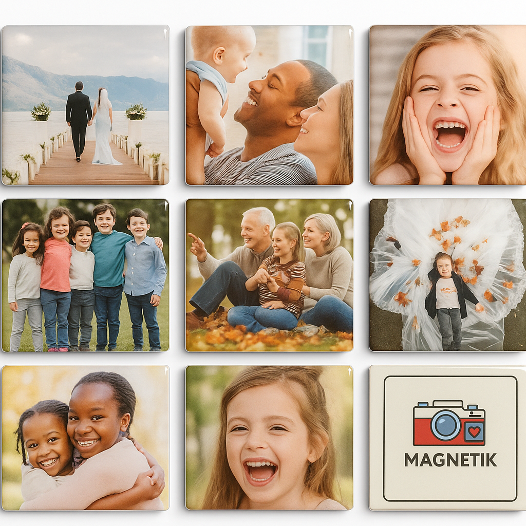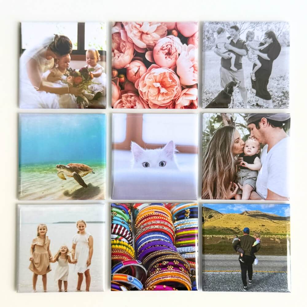 Commandez votre lot de 9 aimants photo carrĂ©s dĂšs aujourd'hui et profitez d'une maniĂšre crĂ©ative et Ă©lĂ©gante dâimmortaliser vos instants prĂ©fĂ©rĂ©s.